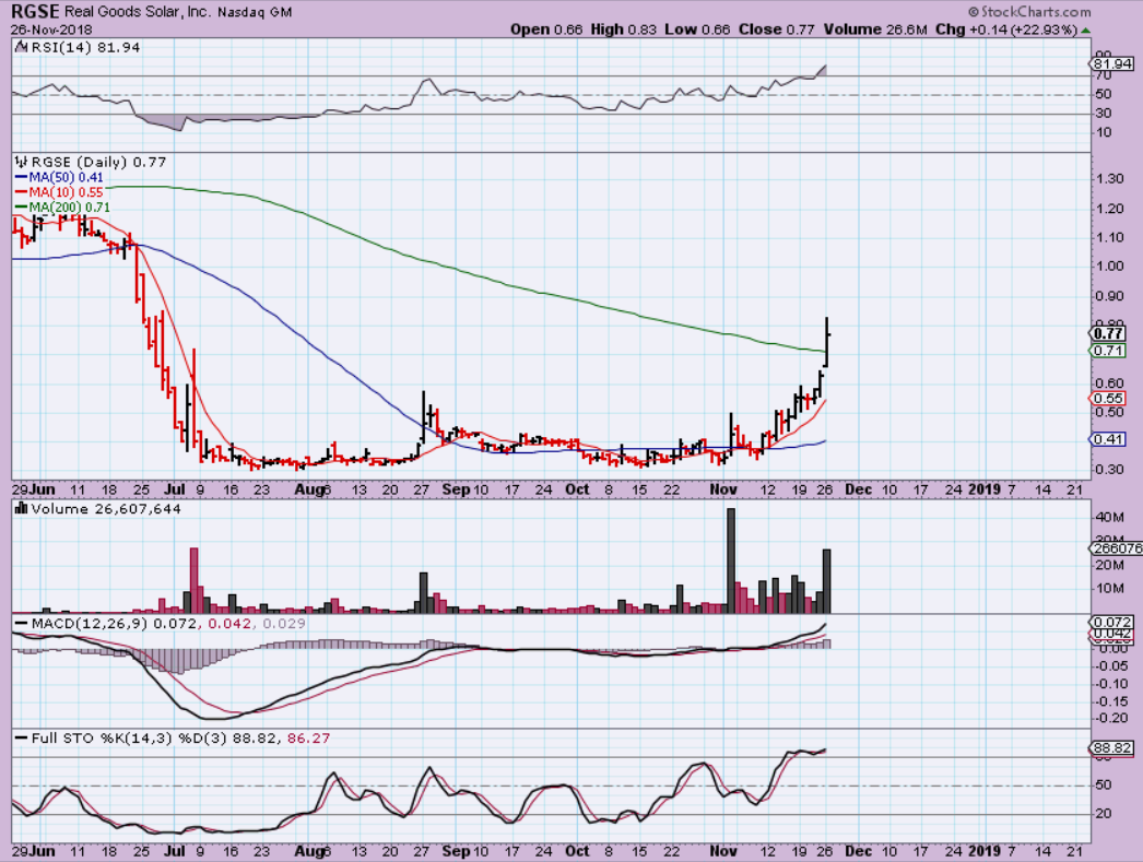 RGSE – We have discussed RGSE and it is climbing steadily out of a base. It has actually doubled in November.