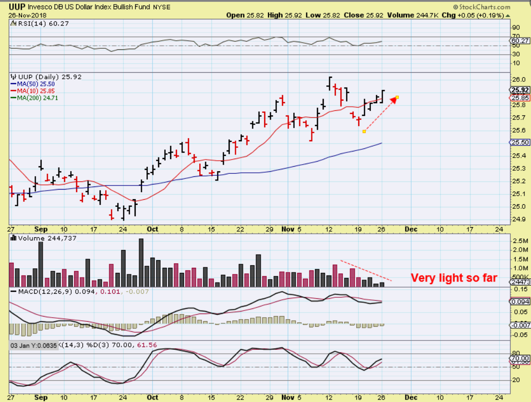 UUP – I’m using the UUP to point out how light the volume was in this push higher. As you’ll see, the Miners had a light volume drop too.