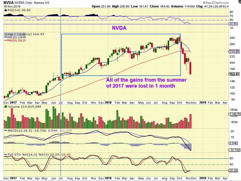 General Markets:  As we move forward, we also see some big reactions in Earnings disappointments. I have mentioned GOOG, FB, NFLX, and now another former Bull Runner  NVDA has erased major gains from a year & a half  in 1 month! So, the BIG Picture for the Bull Run in the General Markets remains cautious.