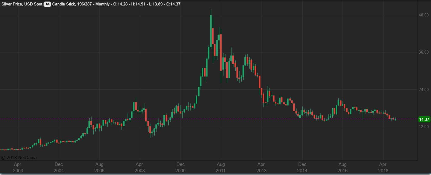 SILVER BIG PICTURE  shows Silver on a longer term support area.