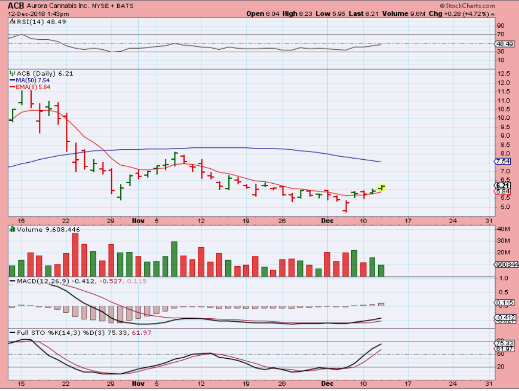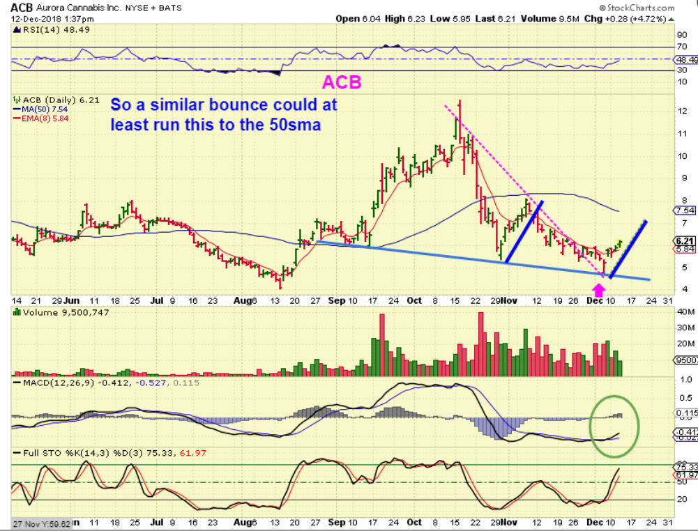 ACB  #1  That discussion leads me to ACB.   It had closed above the 50sma, as a buy…