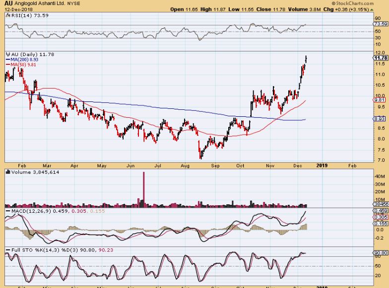 AU #1–  IN OCTOBER,  this was one of our leaders running higher, consolidating, and running higher again.  This is the kind of bullish action that you want to see in Miners,  but others were  at their lows and lagging.