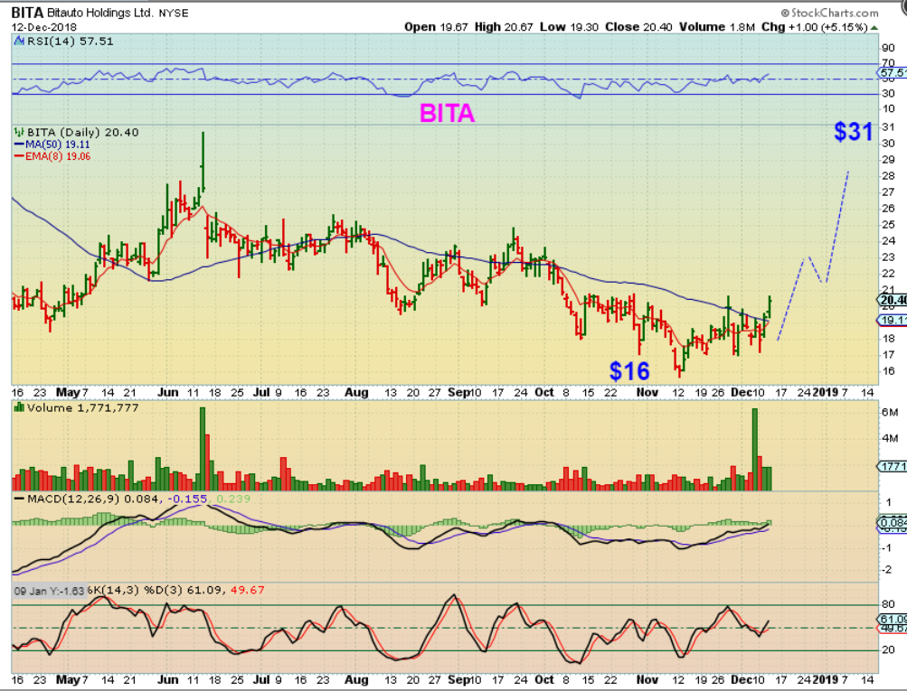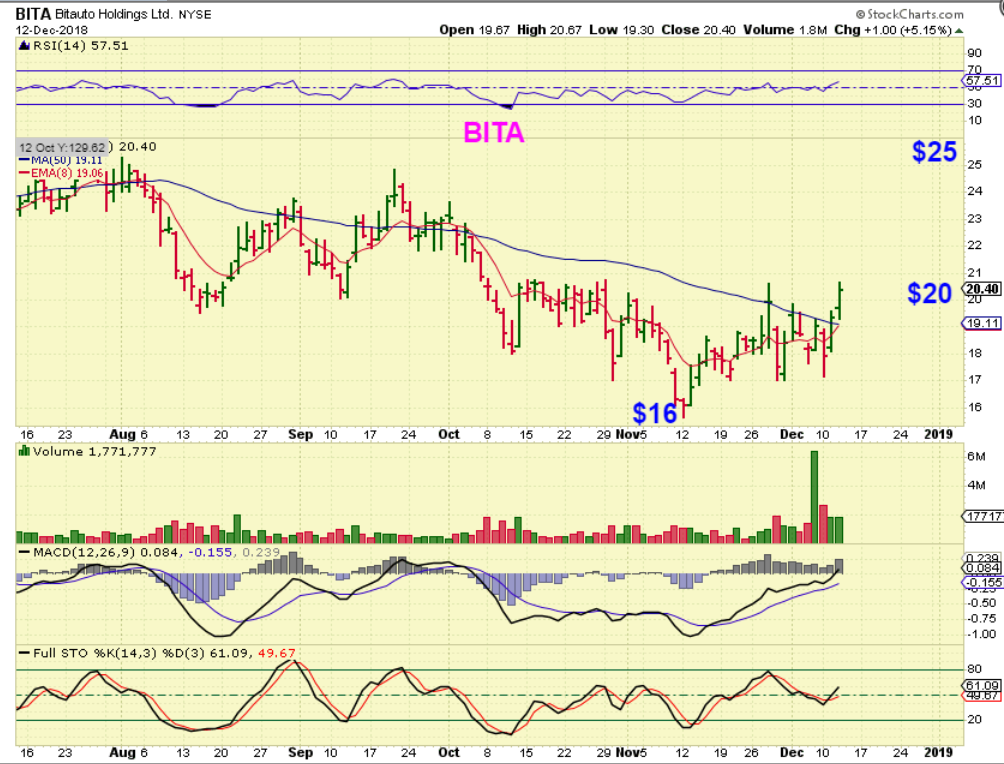 BITA –  In the past this has made Great Gains.  May to June was $18 to $31.  IT can be bought with a stop under the 50sma.