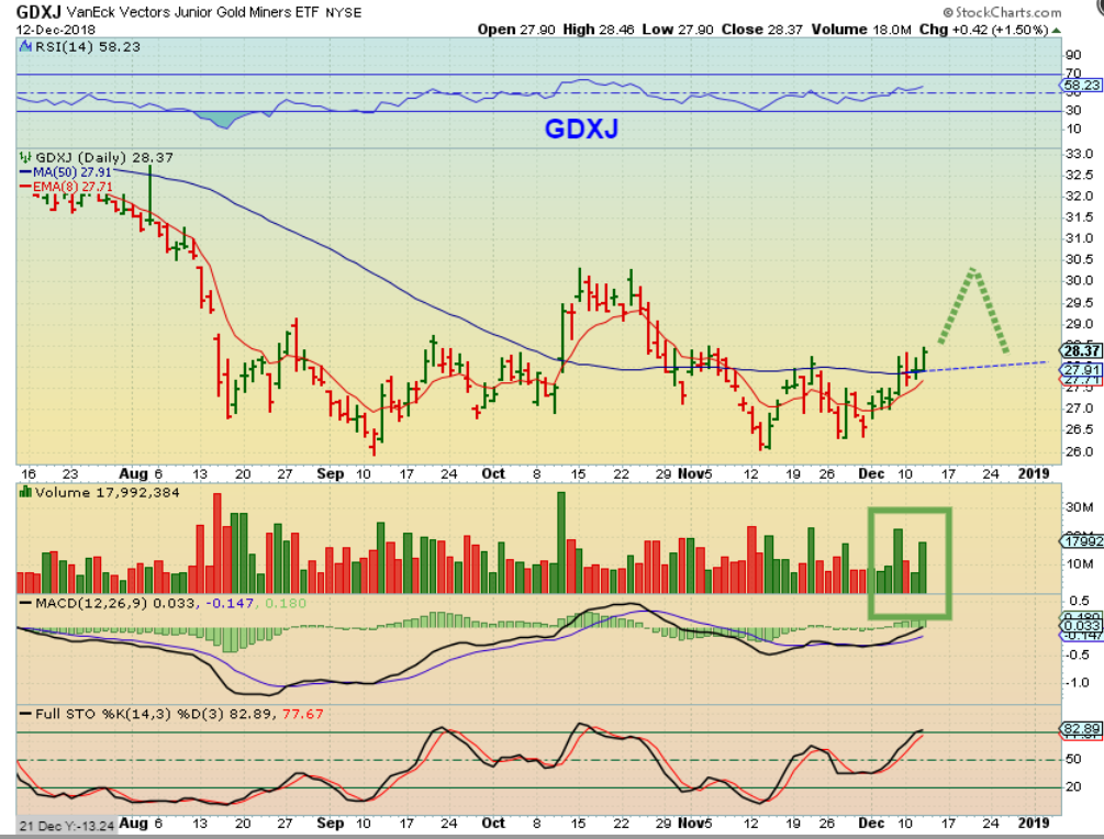 SO I WANTED TO MENTION THAT SEVERAL OF THE LAGGERS IN THE JUNIOR MINING SECTOR MAY BE  TRYING TO PLAY CATCH UP AND LOOK TO BE PUSHING ON THEIR 50sma.   IF THEY CONTINUE BREAKING FROM THEIR SIDEWAYS CONSOLIDATION,  THERE IS STILL ‘TIME’ LEFT FOR THIS TO MOVE A BIT HIGHER, EVEN IF GOLD JUST STALLS AT RESISTANCE.