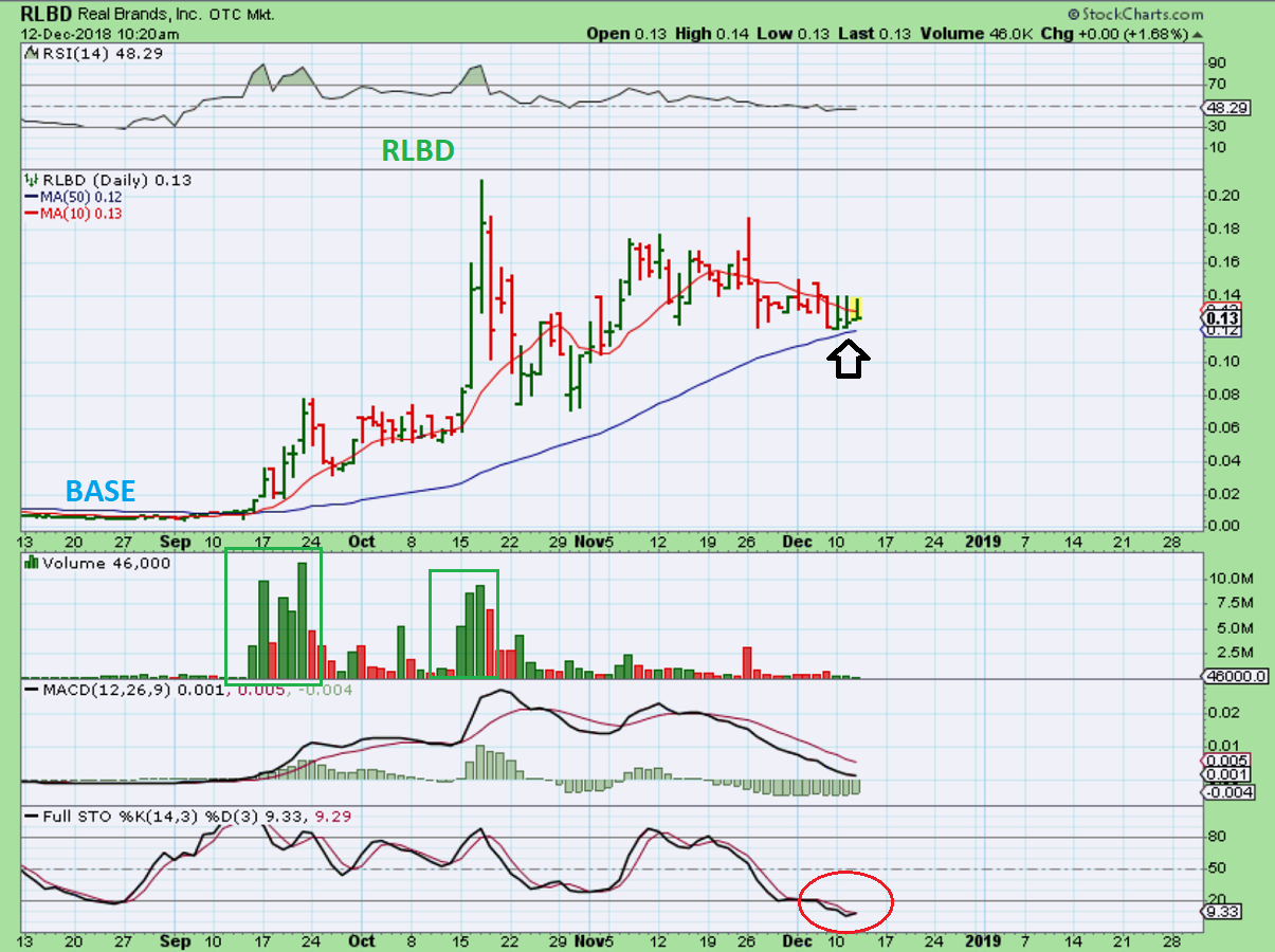 RLBD –  Real Brands has made some deals in the CBD Infusion market, so it ran from 1 cent to 20 cents ( huge %-Gains) and went sideways to the 50sma.   I captured this at 10:30 a.m.   and then…