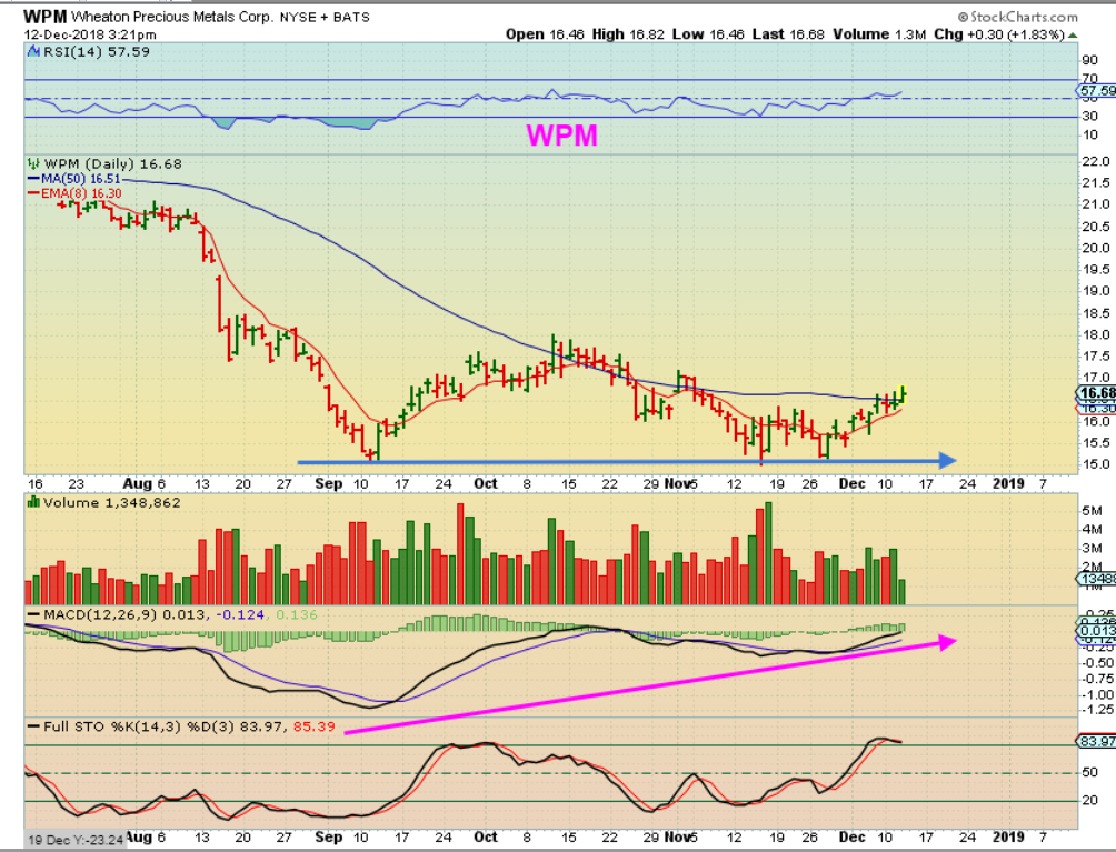 WPM  – I am seeing big divergence on Many Miners, and WPM is also breaking above the 50sma.
