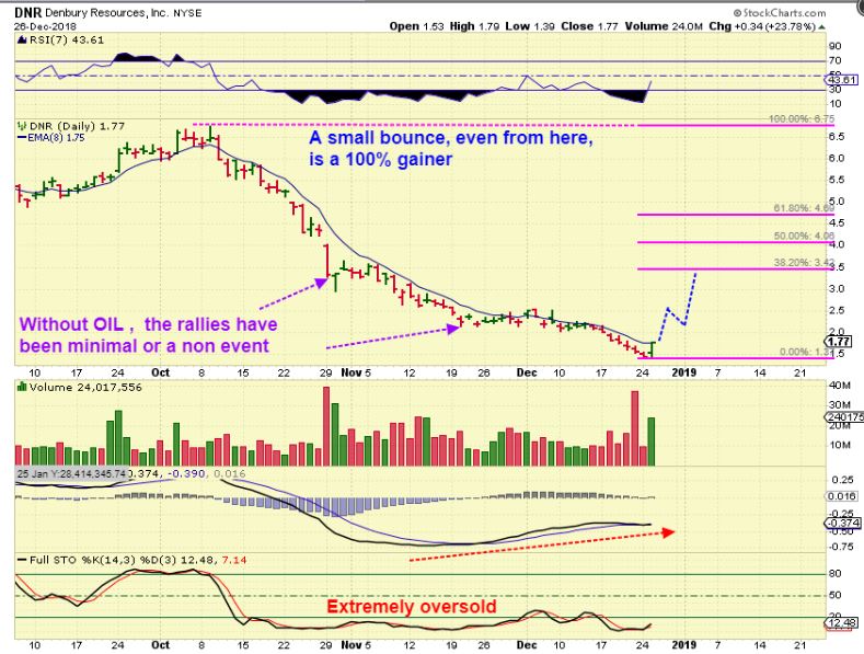 DNR – I also see the 38.2% Fib bounce as 100% from the current price, but if OIL doesn’t continue to push higher, it is unknown or unlikely that these will run as nicely as that.