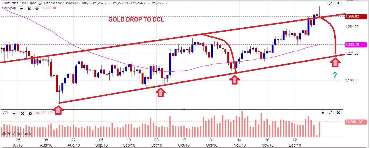 GOLD – In my Monday chart, I pointed to the $1280-$1300 point as a resistance area, and then I’d expect a drop into a dcl.