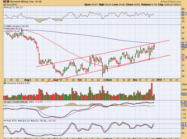 NEM – Nem looks ready to pause too, as it reversed off of the 200 sma & upper trend line. A break out would be really bullish, but a pull back would be expected. Buy the dip 🙂