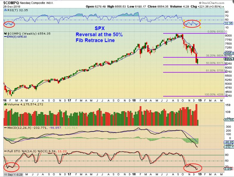 SPX– Again the SPX has now reversed at an important fib number. Notice that the weekly stochastics and RSI 7 on the weekly charts look very similar now to the lows in 2016.