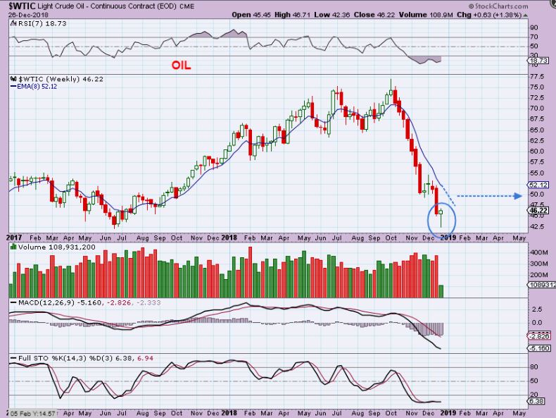 Last week OIL was $51 down to $45.59 on this chart- I was looking at how sharply and quickly OIL can drop. It dropped from $80 to $45 here, but past sell offs were massive. Support looked to be at $35-$40 ish. I said that it would not surprise me to see OIL drop to those support levels. Well…