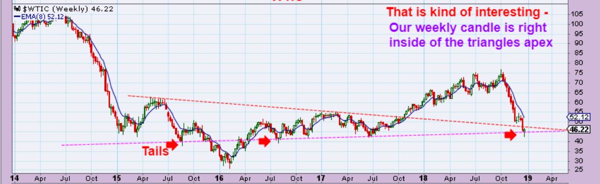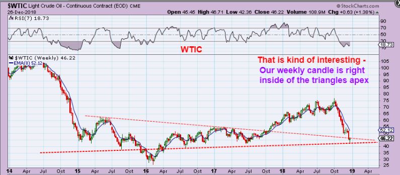 WTIC – I thought that this looked interesting. Oil landed inside of the Apex of a possible triangle support, so let’s zoom in.