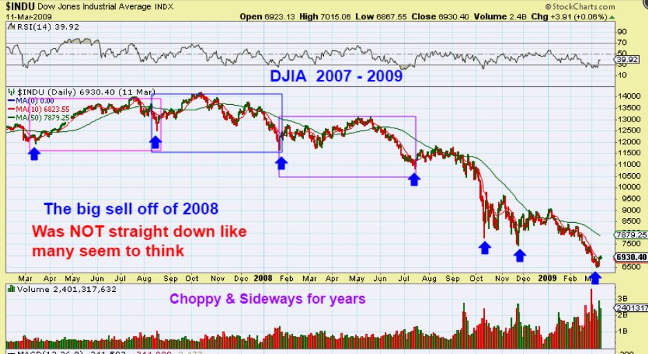 DJIA The Big 2008 Sell Off –  Near the top,  when the market first broken to new lows,  it was late in a daily cycle, so the DCL came quickly, and a solid bounce then took place.   So what I am pointing out is …