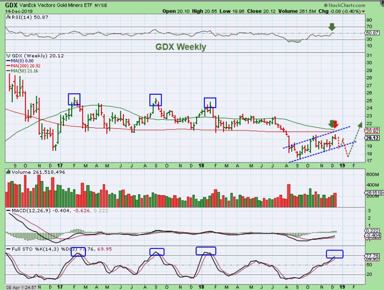 GDX WEEKLY #1 – Miners may be topping here too, but reversed just shy of the moving average resistance.    They COULD run a bit higher and tag that area,  but basically speaking, this is a weekly reversal just under the resistance.