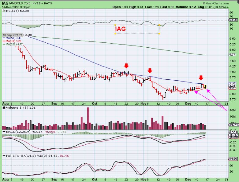 IAG –  I am still watching IAG & EXK  for clues about Silver too.  So far they were held back at resistance, but they also reversed at the 10sma Friday,  so this sector keeps finding buyers on the drop too.