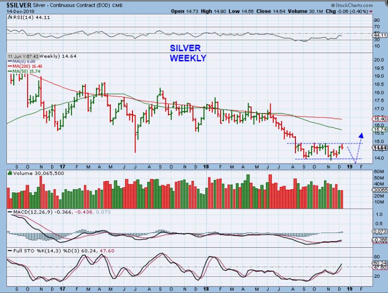 SILVER WEEKLY  – Silver has simply formed a base.  We could drop and then rally or …