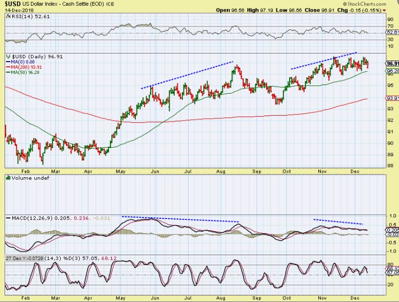 USD DAILY– The momentum does look to be weakening over time, and the daily cycle is coming due for a dip into a DCL,  so we will probably see a dcl, another push higher, and then it could roll over from there.   That would line up with timing for GOLD to bottom after a pull back,  but again,  the USD and GOLD do not seem to be as tied together as they have in the past.