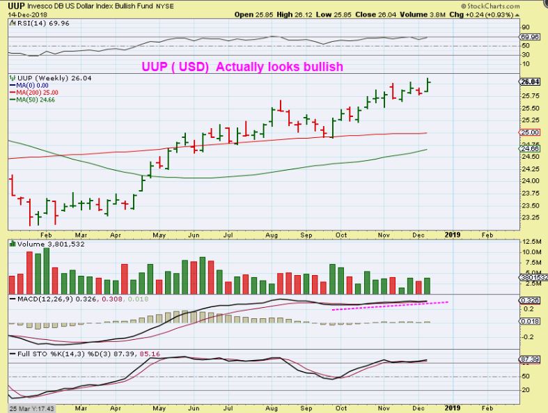UUP WEEKLY  – The weekly chart of the USD ( UUP) looks pretty good actually.  This has been bullish, but it is not hurting Gold, since GOLD and the Miners have been moving higher lately too.  Let’s look at the Daily chart.