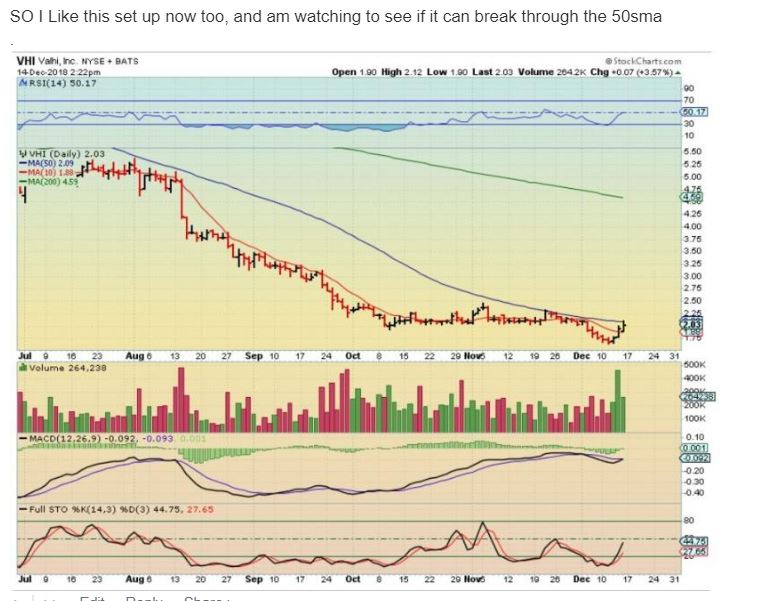 On FRIDAY I saw  VHI at the 50sma with volume increasing,  so I took a starter position and will add if it breaks above that 50sma,  just like  UXIN & UBX.    And …