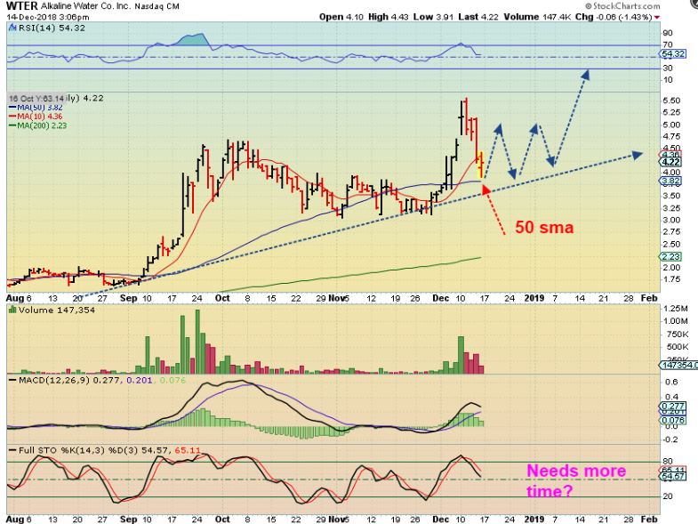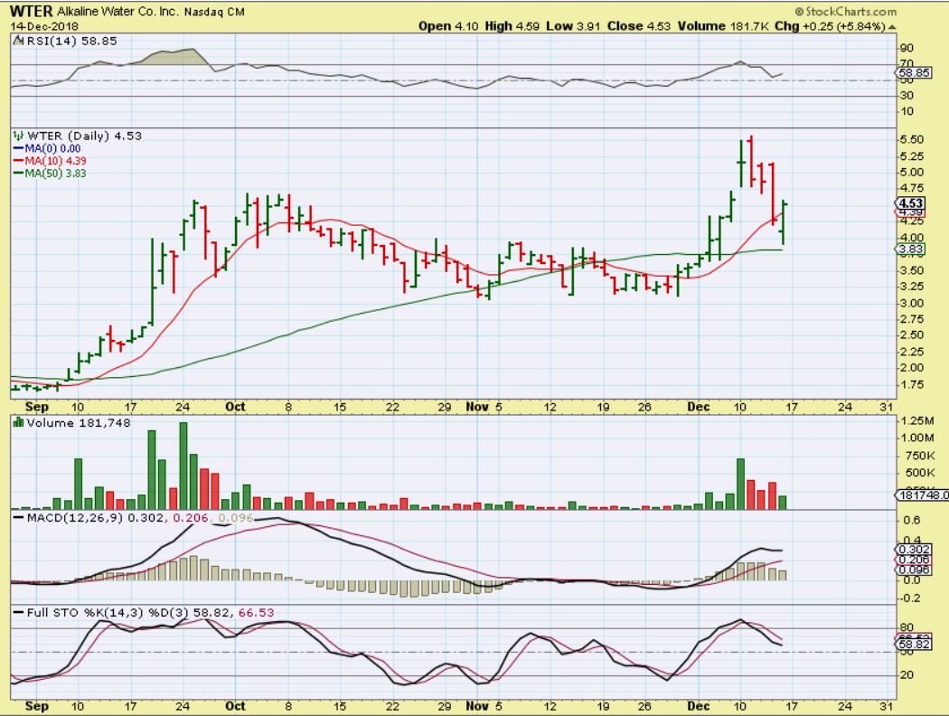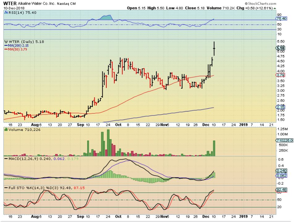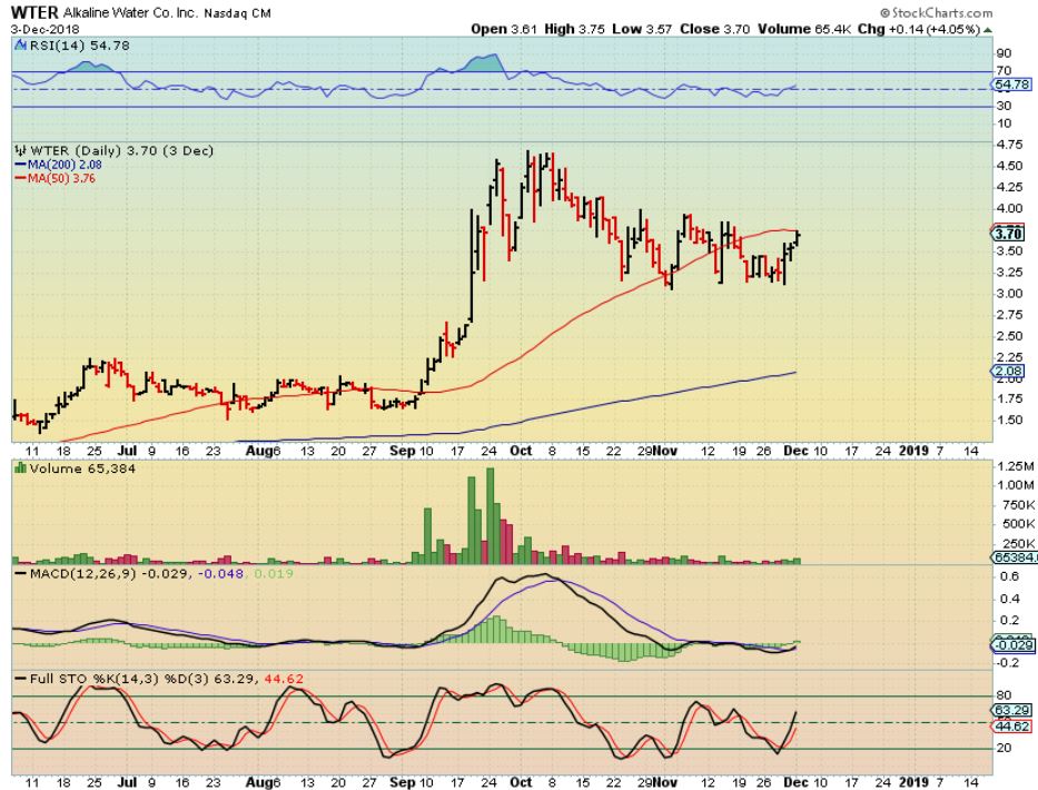 WTER #1  – Pushing on the 50sma, this was bullish.  I bought NBEV  above $4 instead and then WTER took off!!