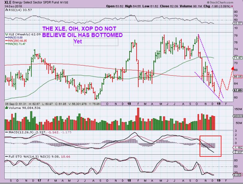 XLE WEEKLY  – THE XLE  broke down and closed near new lows, not believing the OIL bottom.