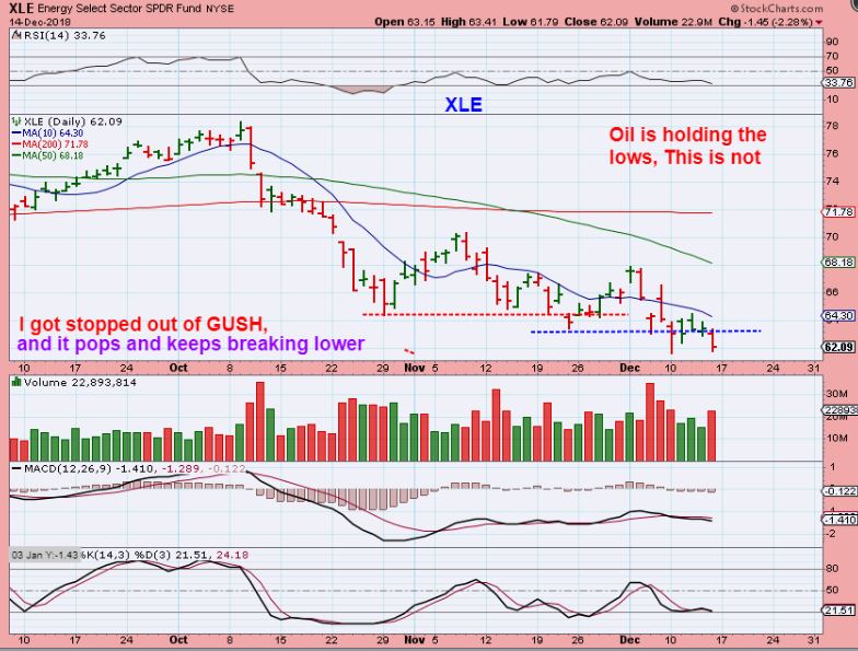XLE DAILY  – I was stopped out and did not re-enter.  OIL is holding its lows, but XLE is not.