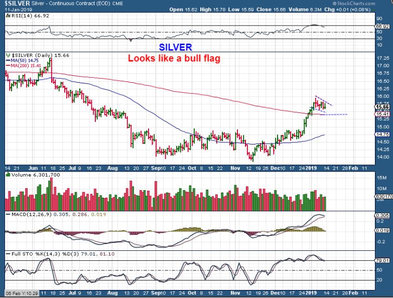 SILVER DAILY  –  Sideways also fits the daily chart.  A bull flag to the 200sma back test would be perfect. BUY THAT REVERSAL!