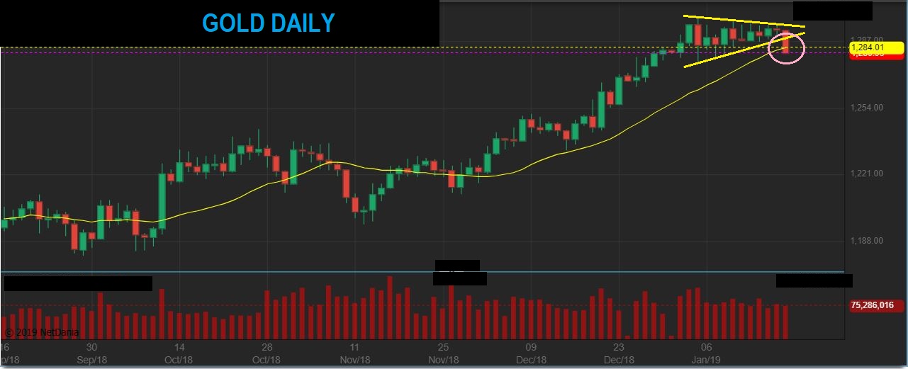 GOLD DAILY – The USD popped and Gold  FINALLY dropped. It looked strong and formed a Bull Flag, but it is time for a dcl, maybe ICL now.