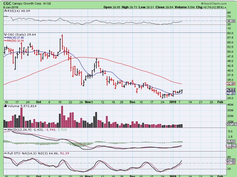 CGC    – Jan 8 saw CGC drop to the 10sma and reverse higher again.  The 10sma acted as support…