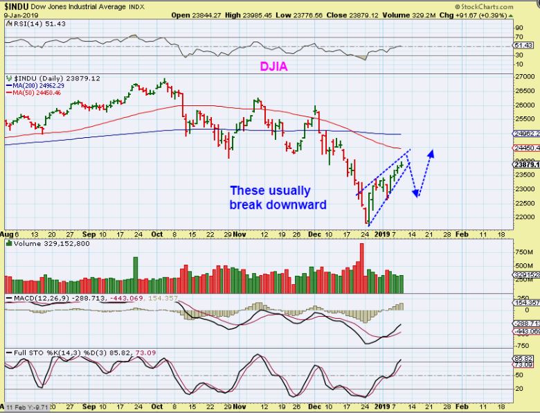 DJIA –   This really looks like the run is almost ready to drop for a bit. I almost always see these rising wedges break down.