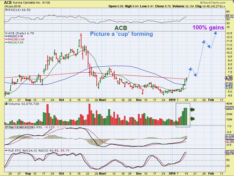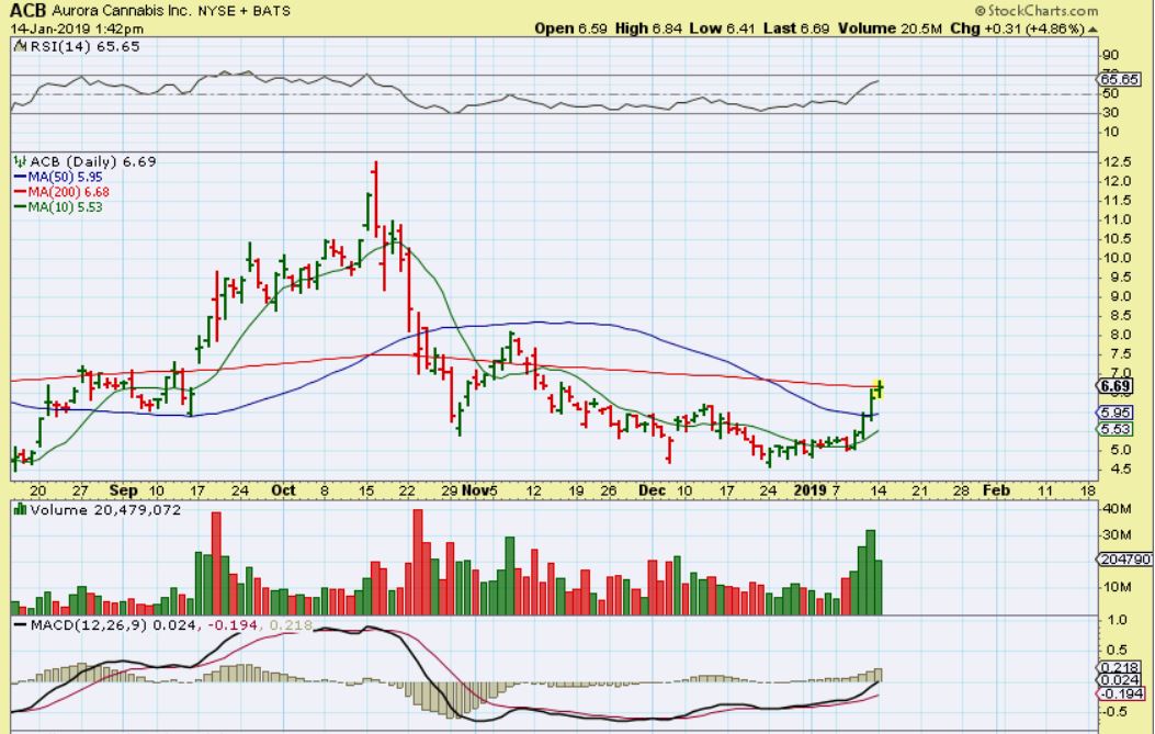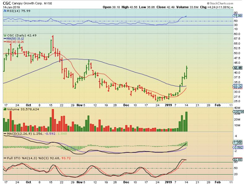 CGC – More great follow through above the 50sma day after day after day. This is why I added to ACB above the 50sma.