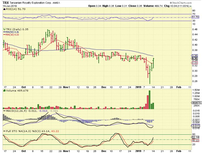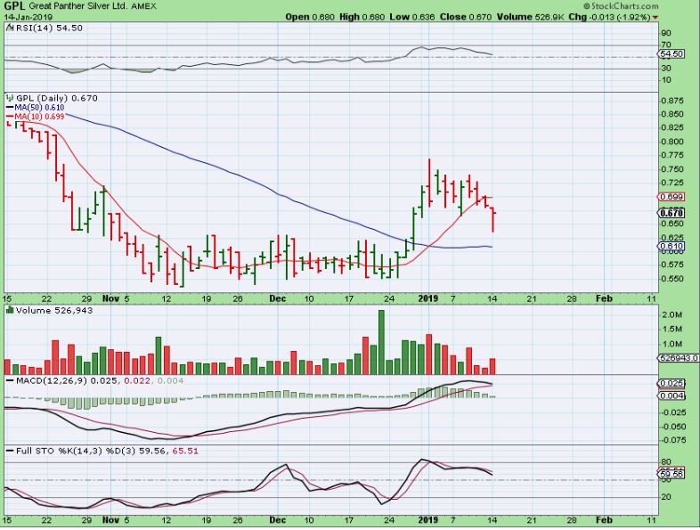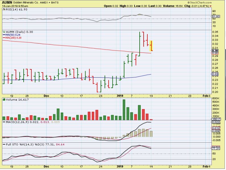 AUMN – I captured this within the first 1/2 hr of trading. It actually broke the 200 sma later in the day and recovered by the close, closing down just 1 cent. So individual Miners are still looking bullish, though they are pulling back.