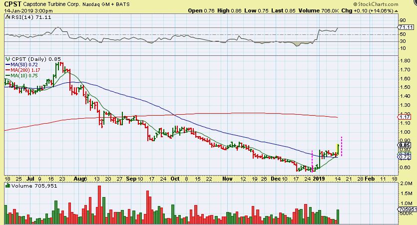 CPST – On Jan 3rd, CPST popped above the 50sma