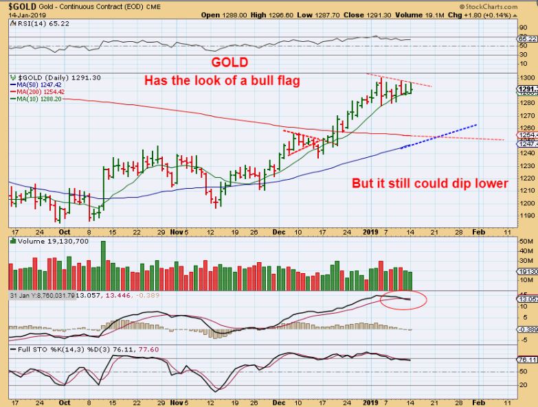 GOLD – GOLD itself looks like a Bull Flag on the 10sma. It could drop under that 10sma, because Miners did that on Monday, but it looks pretty bullish to me. For now, let’s look at GDX & GDXJ and see what happens to Gold overnight & on Tuesday .