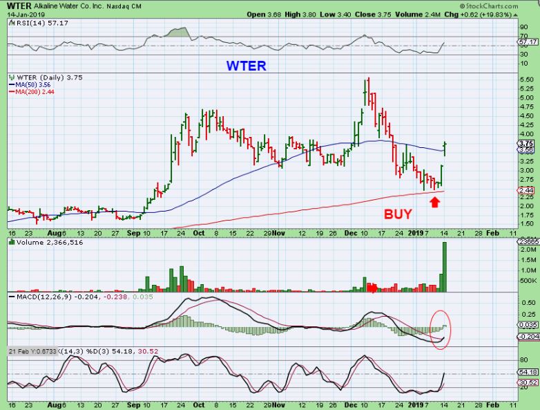 WTER – A BUY at the 200 sma, it was Up another 20%, now up over 50 % in a couple of days