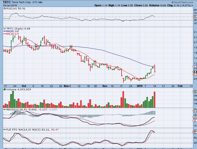 TRTC – I bought TRTC as it broke from a tight base and added- with a average Buy price in the 70+ cent area. I expected a run to the 50sma, a pause, and maybe a run to the 200 sma. Well..