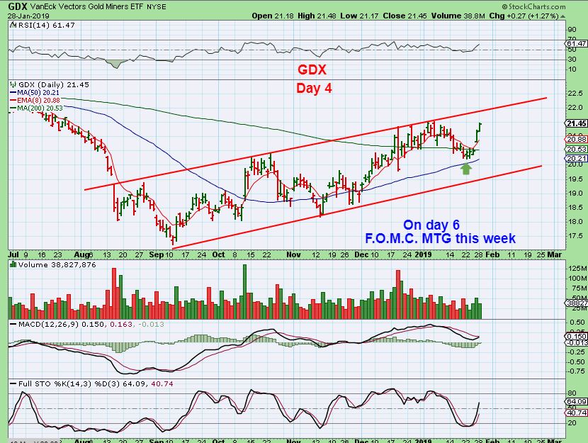 That means that after buying a dcl, you may just want to honor your stops and let it ride for now. When I look at several Miners individually, they do look bullishly set up. Some Miners may run on their own, I have already mentioned that, and TRX is proving that to be true. For that reason, I want to show both ideas above for Gold, and we will watch and to see if either happens after the Wed FOMC Mtg.
