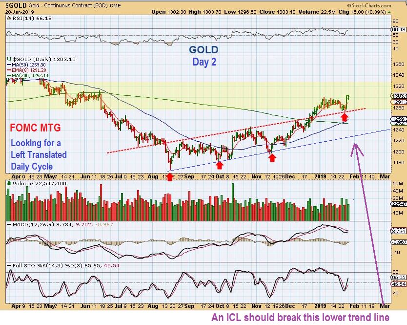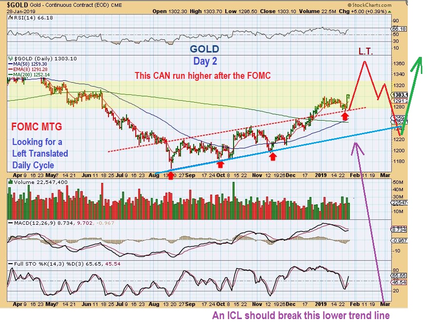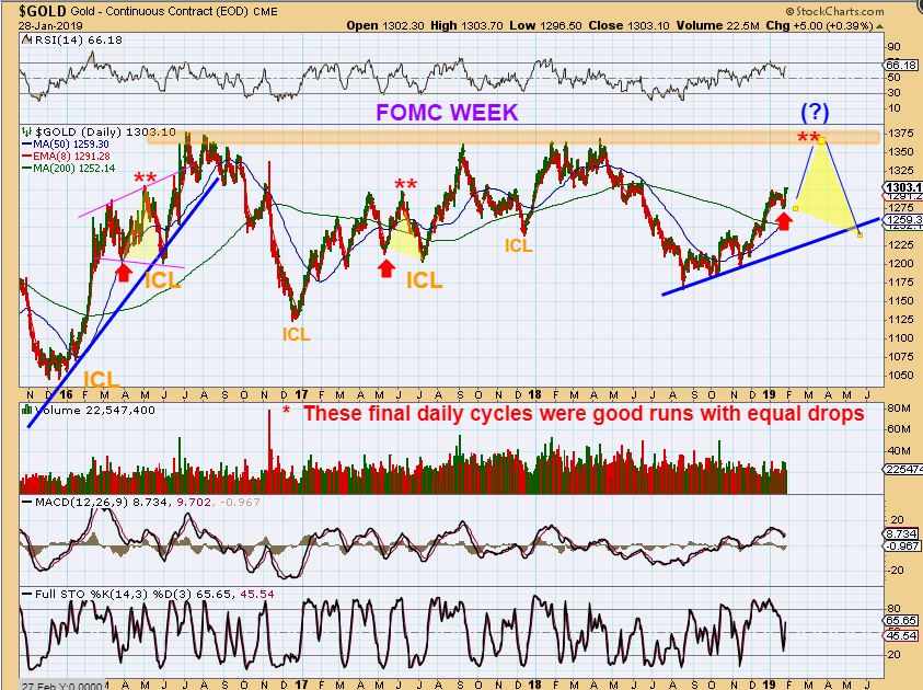 GOLD FOMC DROP – This would be a normal L.T. Daily Cycle peak and roll over into an ICL, showing a roll over soon after the FOMC. The BIG PICTURE BASE would just be completed on the next run higher.