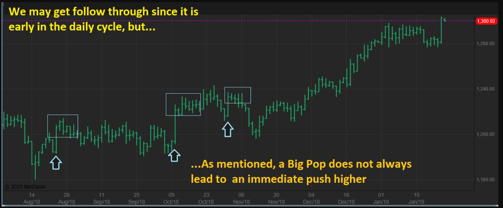 WE KNOW THAT GOLD CAN JUST GO SIDEWAYS TO SLOWLY HIGHER AFTER A POP, AS SEEN HERE. I MENTIONED THIS IN THE WEEKEND REPORT, SO KEEP THAT IN MIND.