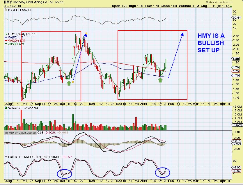 HMY – This is a bullish set up that found support at the 50 & 200sma. It did so even cleaner than it did in October.