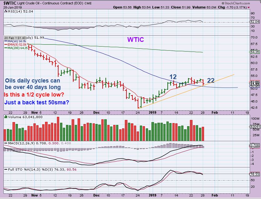WTIC – Oil has been crawling too. We’ll have to see if the 50sma holds as support? Do we get a shake out? It tagged the 50sma Monday, so does it reverse & run higher from here? It is still early and I do expect more upside coming out of an ICL, so all you can do with the current trade is honor stops if it breaks down. Then if it does a shake out, get back in to ride the 2nd leg higher, but so far so good.