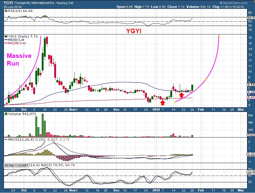 YGYI – After crawling sideways for 2 weeks along the 50sma, this Popped sharply Monday. If this were to repeat the Sept – Oct run, it would land on $16.