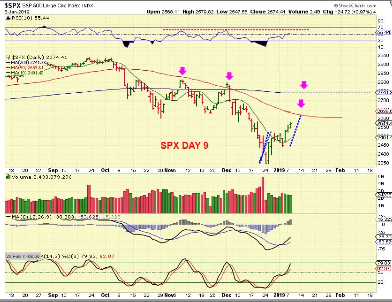 SPX #2 – This is actually day 8 .  This bounce has played out well so far, we are reaching various resistance areas.  That blue line 200sma should be attainable as a back test ( in my opinion), but if someone has taken on leverage heavily at the lows, the resistance areas could be an area to lighten up a bit. This has been steadily higher, but it could get choppy at the resistance area.   Time will tell.