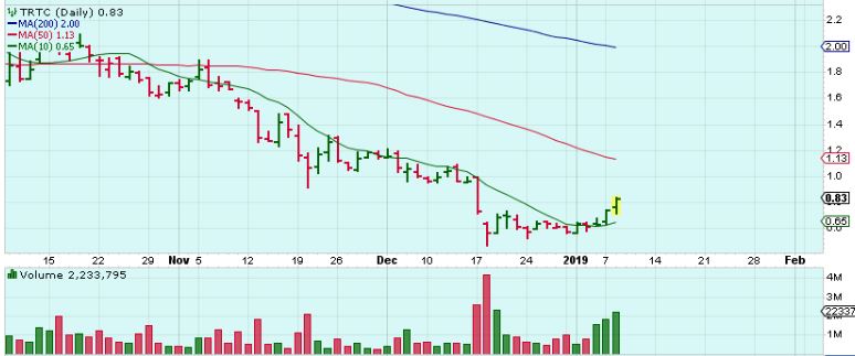 TRTC This trade from yesterday is playing out well too.   It was up 13% at one point, but closed up 9.47%.  I compared this to the NXTTF trade that had a similar base and was running to the 50sma too. Well…