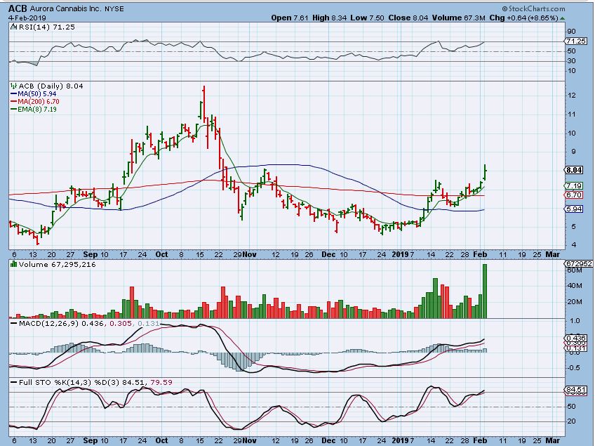 ACB – ACB broke out and I do expect it to continue to run, and it can run to Oct highs or even higher. That was excellent volume, so if you entered that trade, I recommend that you ride it.