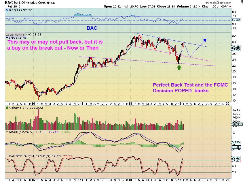 BAC – BANK OF AMERICA & BANKS in general are acting bullishly, even after the FEDS NO RATE HIKE DECISION. I thought that rate hikes would be bullish for banks, but BAC dropped and back tested the 2017 break out, and rallied higher quickly. Let’s look at more…