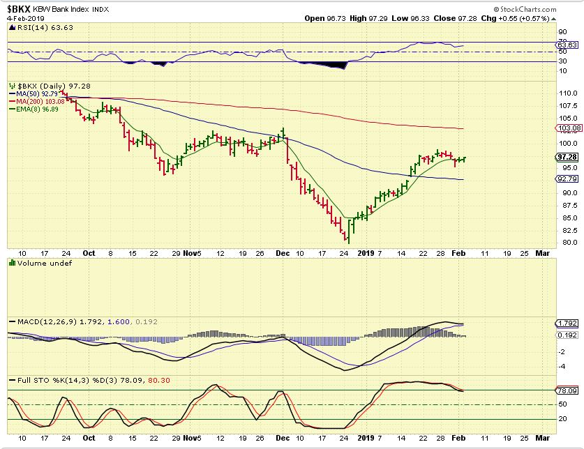 BKX – BANKS V-Bottomed and moved from $80 to almost $100 so far.
