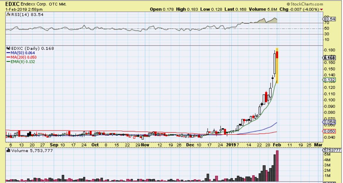 EDXC – EDXC dropped 40% yesterday after trading at the highs for a while. I do want to buy back in later, but it often takes a while for a broken parabola to consolidate & build itself back up. I’ll look for an entry in the future.