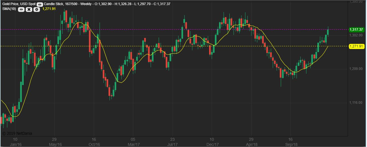 GOLD WEEKLY – This just shows that Gold is pushing against an area of congestion to the left ( or resistance).