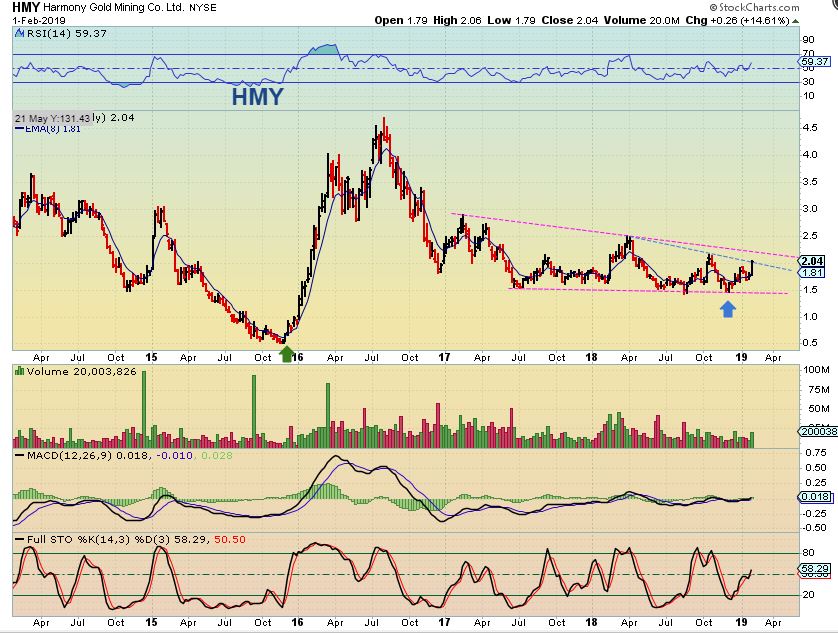 HMY BIGGER PICTURE – Isn’t this even better? It has not ‘broken down’ in 2 years, instead it has held up and formed a very long base. The potential in the Mining Sector is great. I can see this doubling, tripling, etc.